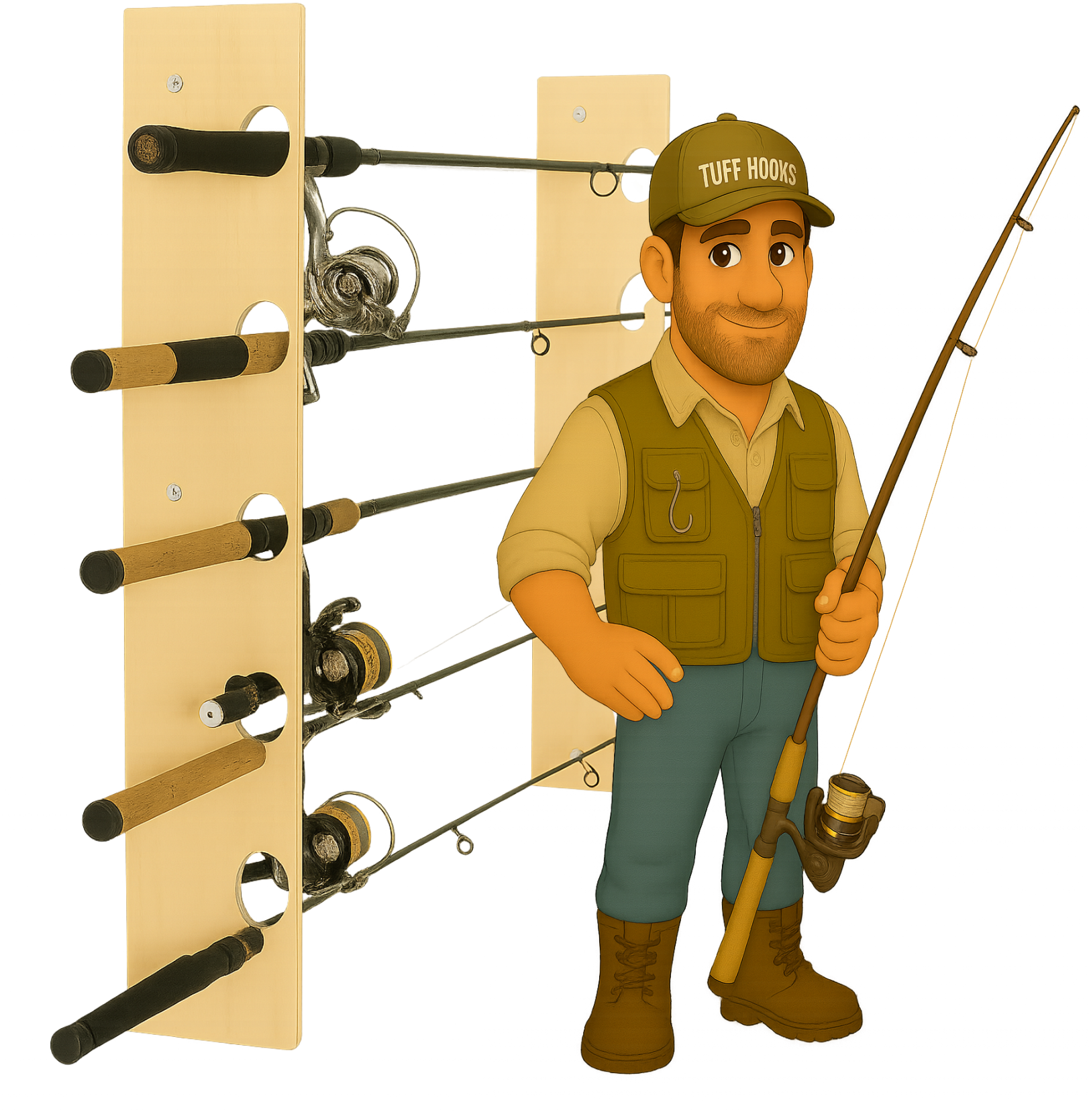 Keep your fishing rods safe, organized, and ready for your next trip with the TUFF HOOKS Fishing Rod Organizer. Designed for easy installation and long-lasting durability, this two-piece wall-mounted system transforms any shed, garage, or tackle space into a clean, professional storage zone.
